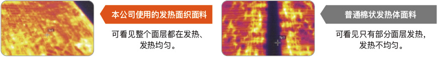本公司使用的发热面织发热体与普通棉状发热体对比图(使用热成像摄相机拍摄)